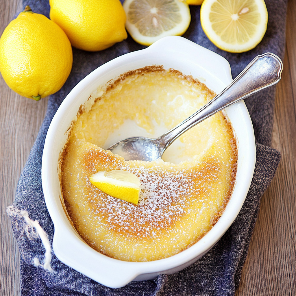 Enjoy this delightful Baked Lemon Pudding as a refreshing end to your meal!