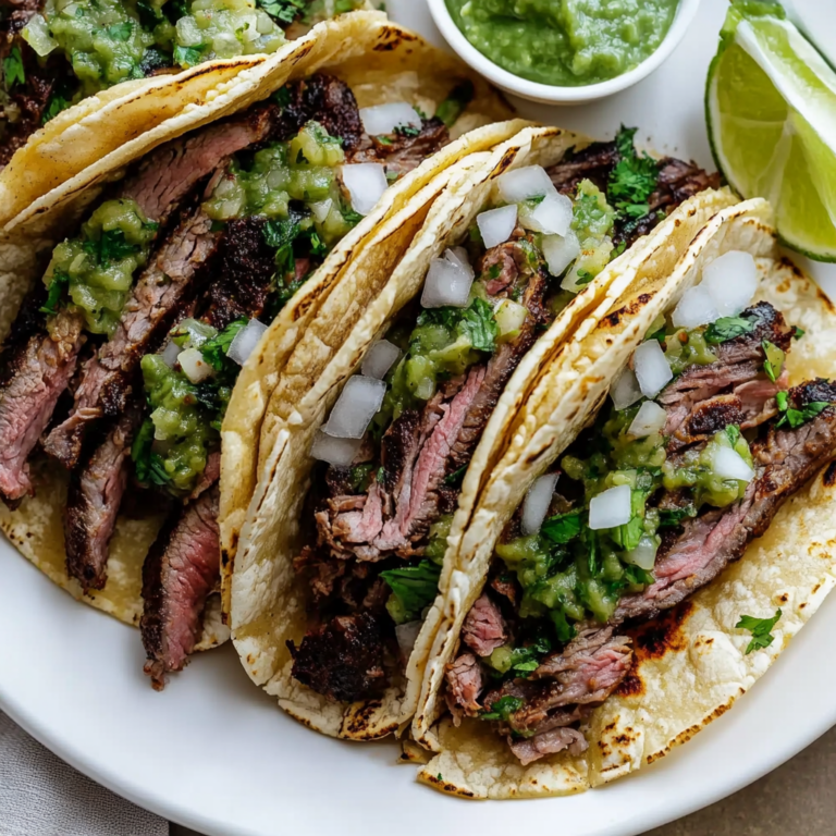 Indulge in the vibrant flavors of our Carne Asada Tacos Recipe, a delightful way to enjoy authentic Mexican cuisine right at home. This dish features juicy, marinated flank steak grilled to perfection and wrapped in warm tortillas. Each taco is garnished with fresh cilantro and diced onions, offering a perfect balance of smoky, tangy, and savory notes. Ideal for taco night or serving at gatherings, these tacos are sure to impress family and friends with their mouthwatering taste.