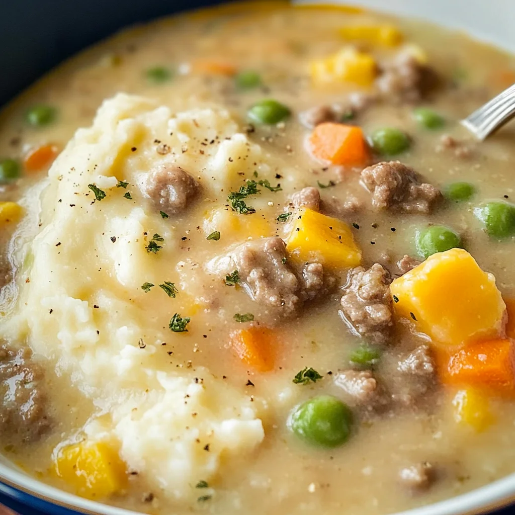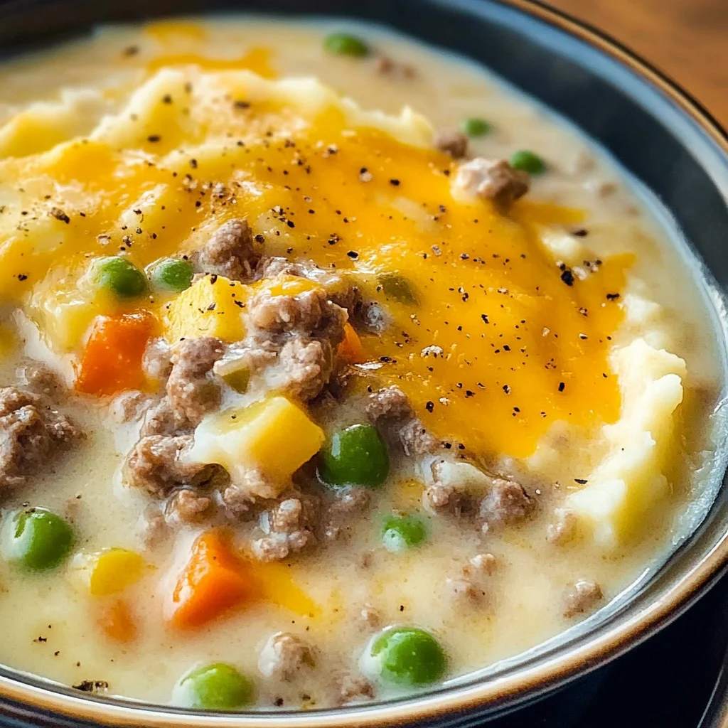 Enjoy creamy Shepherd’s Pie Soup made with ground beef and mashed potatoes. Perfect for cozy nights! Try this comforting recipe today!